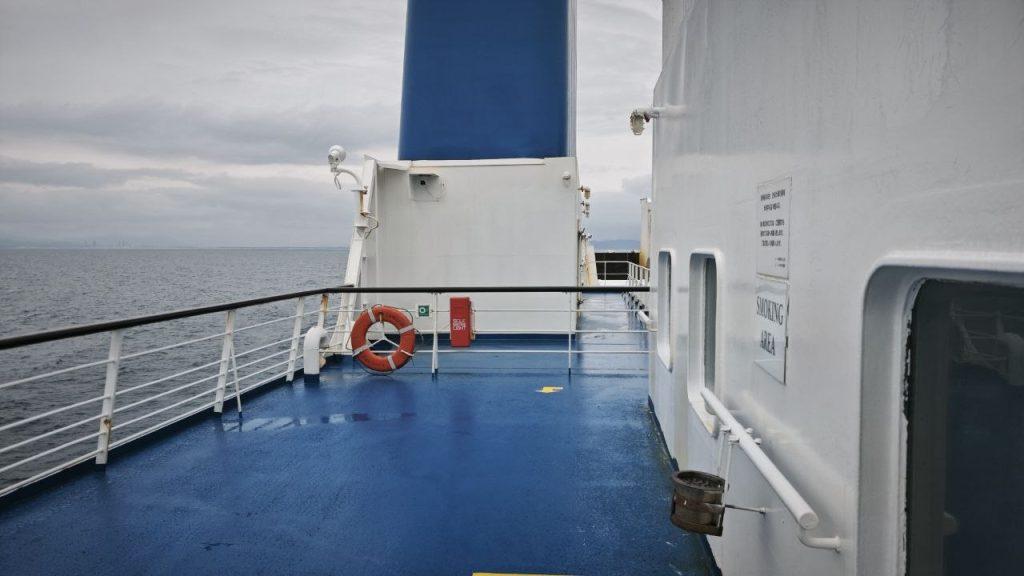 Сам паром по-японски отправился вовремя: в 12:30. Прибытие было назначено на 18:30. И мы бы успели, но почему-то последние 30 км паром плёлся со скоростью пешехода, а потом, даже после того как успешно пришвартовался, видимо из-за прохождения каких-то процедур, людей не выпускали по трапу на волю ещё около 40 минут.